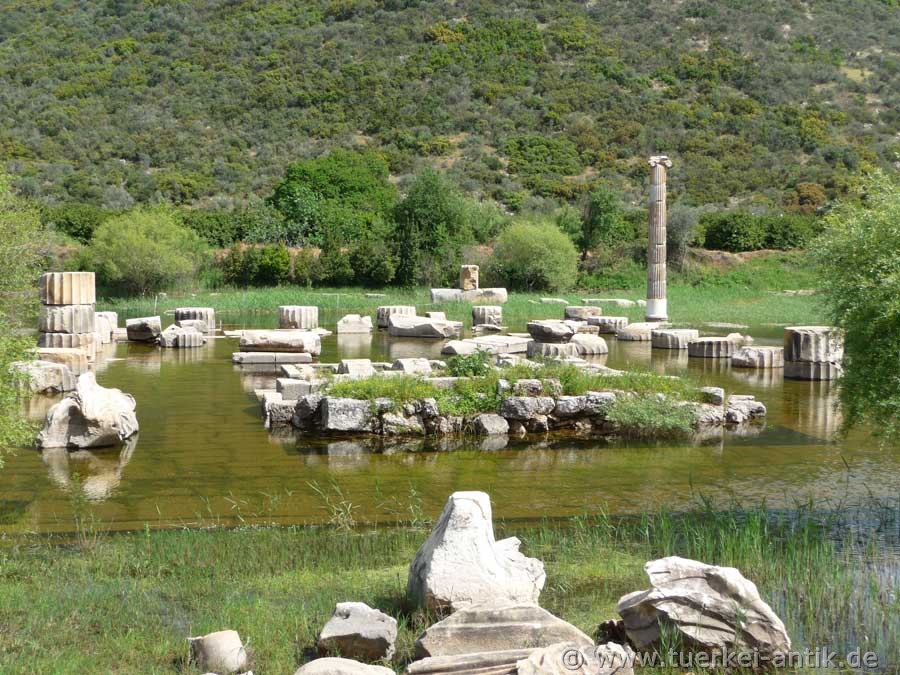 If you want to visit the excavation site of Claros, it is recommended to visit it in autumn. In spring the groundwater is so high that the temple and the surrounding area are up to 2 meters high under water. |