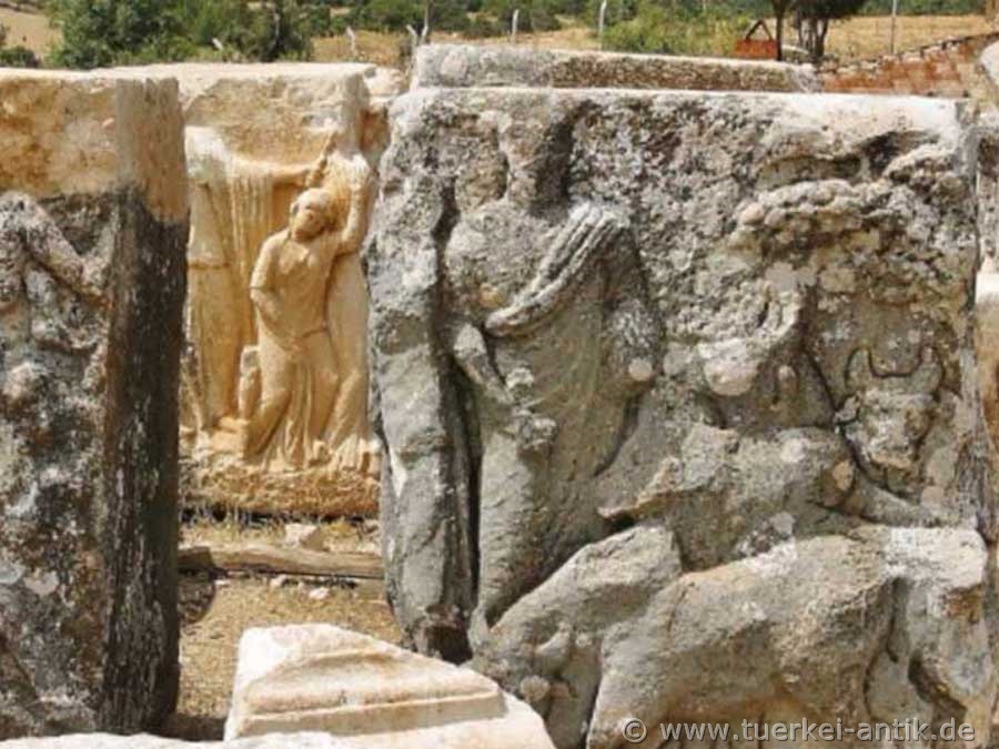 Not much has remained of the ancient Carian city of Herakleia Salbake. The name Herakleia is derived from the demigod Heracles. The sparse remains of the city border directly on the houses on the northern outskirts of the village Vakif, 13 km west of Tavas in the province Denizli. As the city of Aphrodisias, 25 km away as the crow flies, gained in importance through a good relationship with Rome and a large temple of Aphrodite, Herakleia Salbake and the surrounding Carian cities such as Apollonia Salbake, Sebastopolis, Tabai and Kidrama lost importance. |