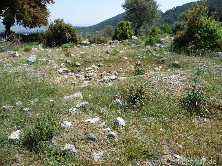 A Mycenaean dome tomb from the 13th or 12th century BC was discovered in the vicinity, apparently also containing sub-Mycenaean pottery. In another tomb a Mycenaean knife and a glass bead of Aegean style came to light. |