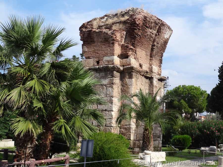 The Byzantine walls that once surrounded the city have disappeared except for a few crumbling remains on the northern outskirts. These wall fragments are, like three pillars of the St. John's Basilica built in the 6th century and some remaining remains of an ancient theatre, the only witnesses of this once rich and well-known city. |