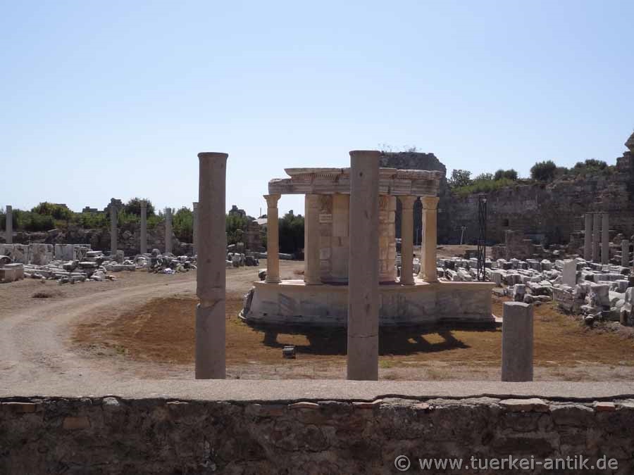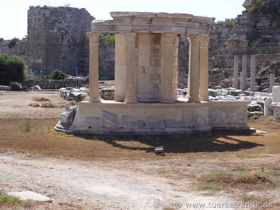 The Temple of the Tyche on the Handelsagora, once surrounded by porticoes, directly below the ancient theatre, was reconstructed in 2011/2012 using original components and completed in 2012. The considerable reconstruction costs of almost one million lira were raised by sponsors. |